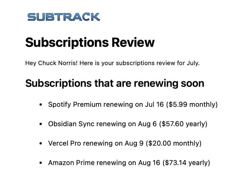 SubTrack is the simplest way to track how much your digital subscriptions are costing you.